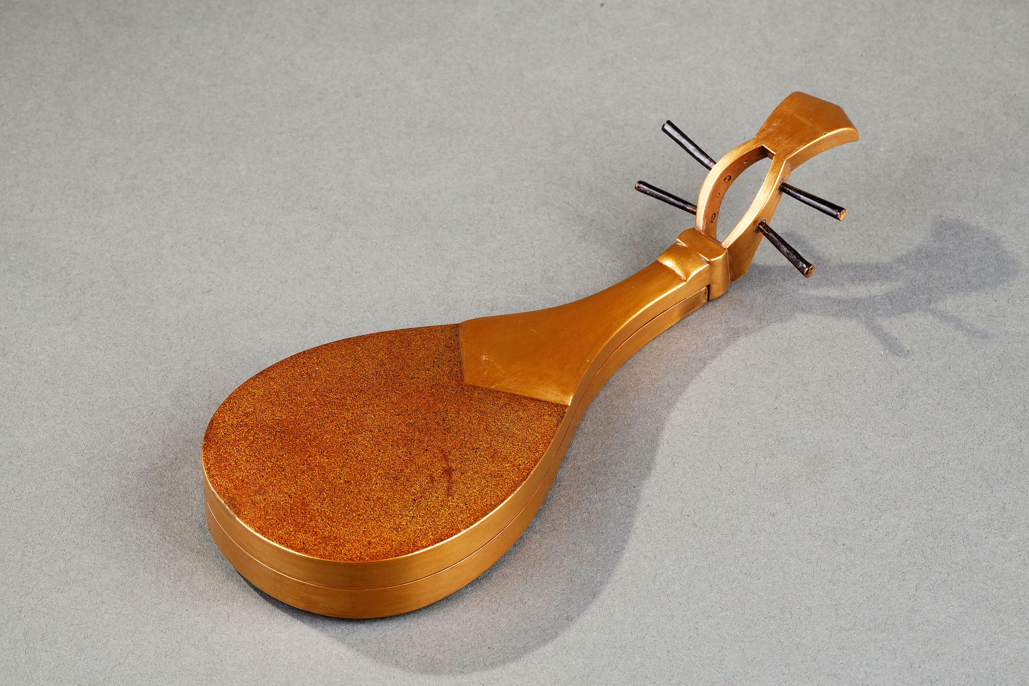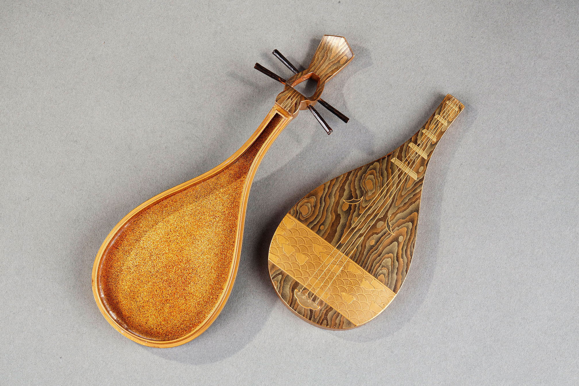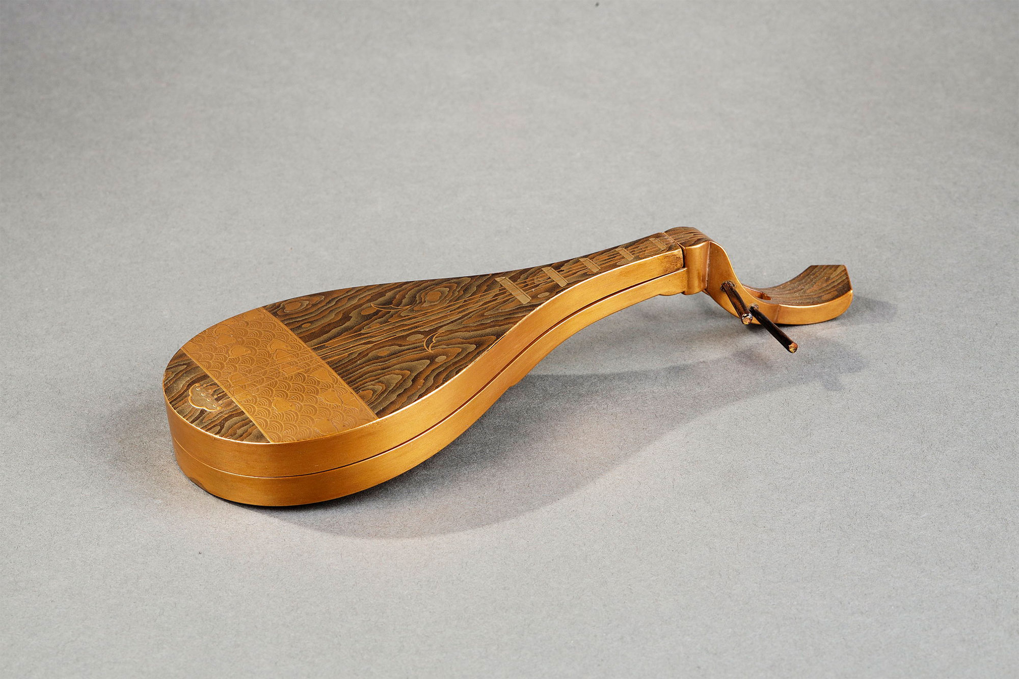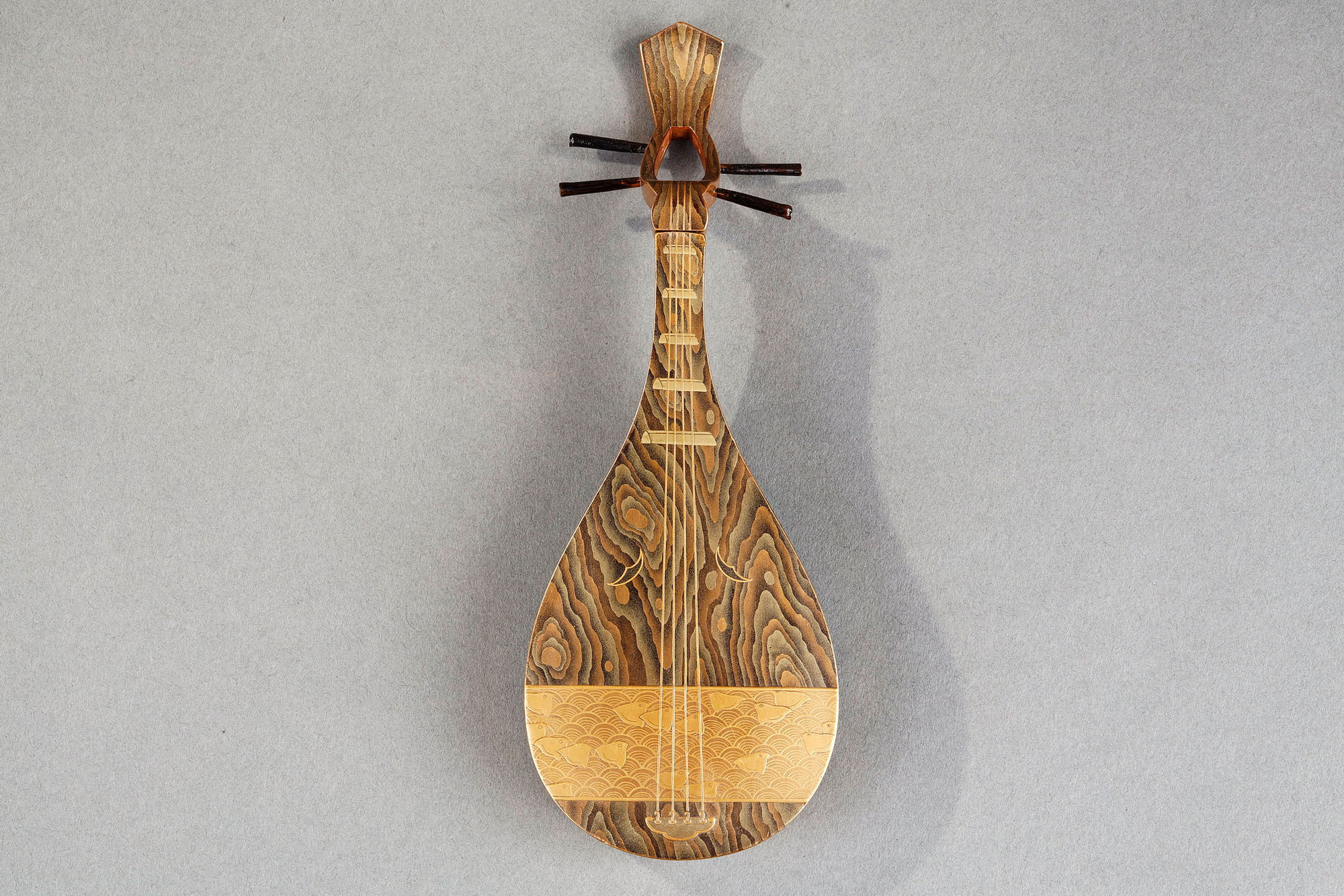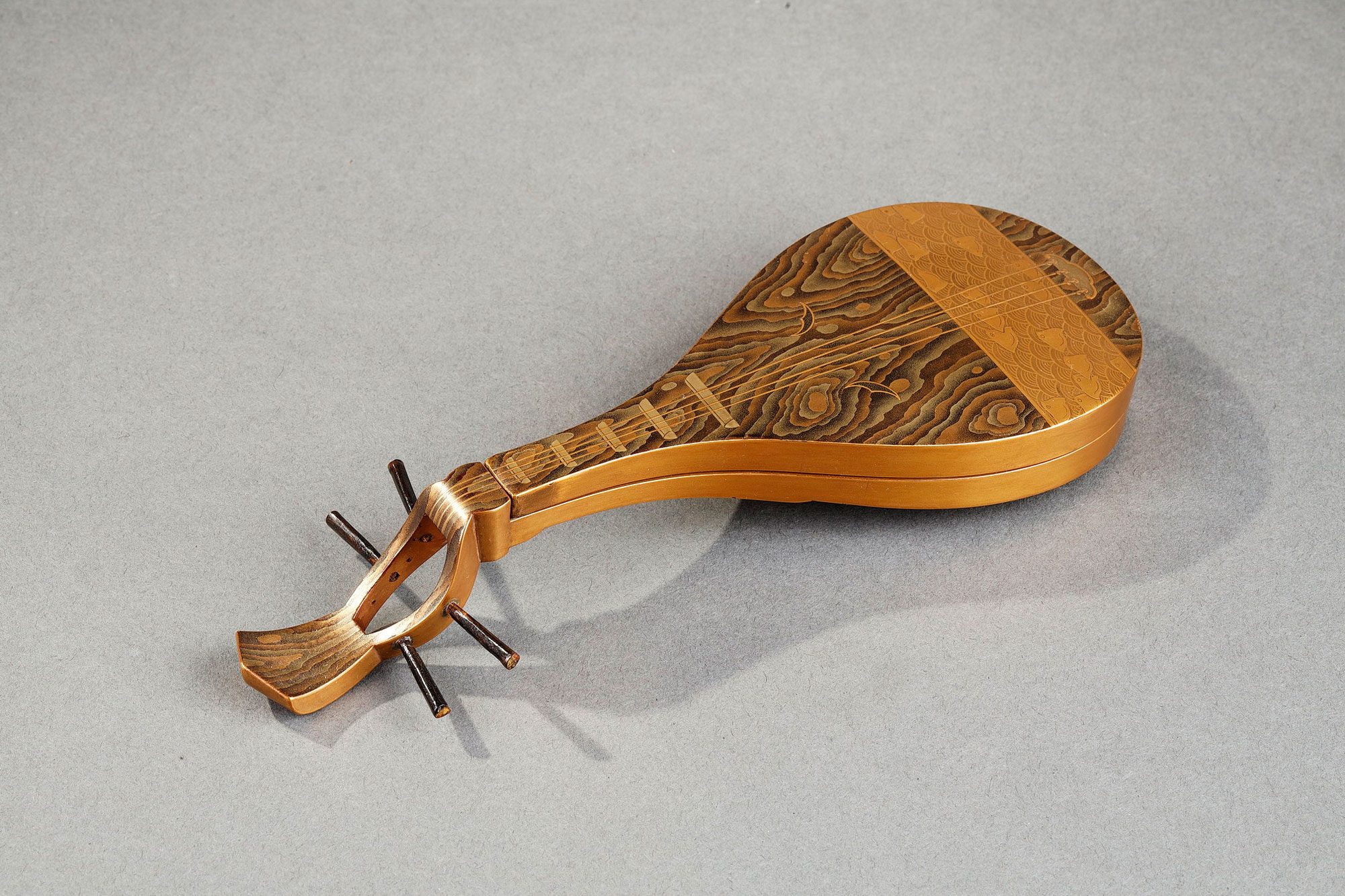 Le biwa possède une forte symbolique dans la culture japonaise : il est associé à la musique narrative et aux récits épiques, notamment des moines aveugles qui chantaient les chroniques guerrières. Par sa forme, cette boîte évoque donc à la fois l’art, la poésie et l’histoire du Japon classique.